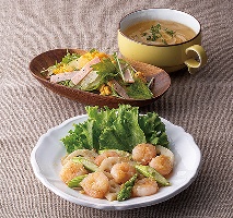 れんこんとアスパラのガーリックシュリンプ