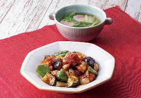 鶏肉となすの黒酢だれ